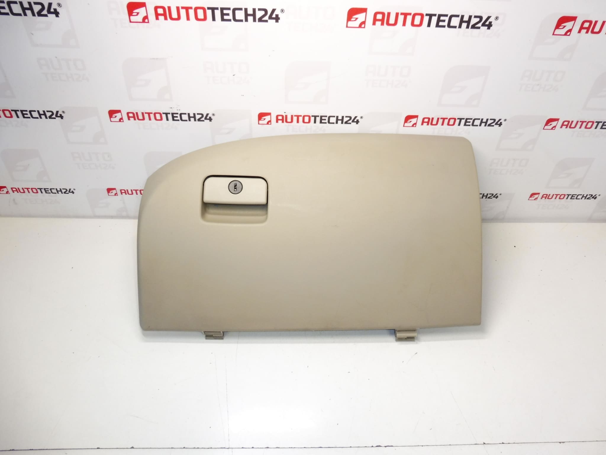 Partybox (GLOVE Box) für Citroën C-Crosser und Peugeot 4007 in Beige (Farbton 0002). Es handelt sich um ein gebrauchtes Teil, das dazu bestimmt ist, das Armaturenbrett bei beschädigtem oder abgenutztem Fach zu ersetzen. Dank der exakten Form und der originalen Montage passt alles ohne Modifikation. Geeignet zur Lösung gerissener Scharniere, nicht funktionierender Verschlüsse oder beschädigter Oberflächen.