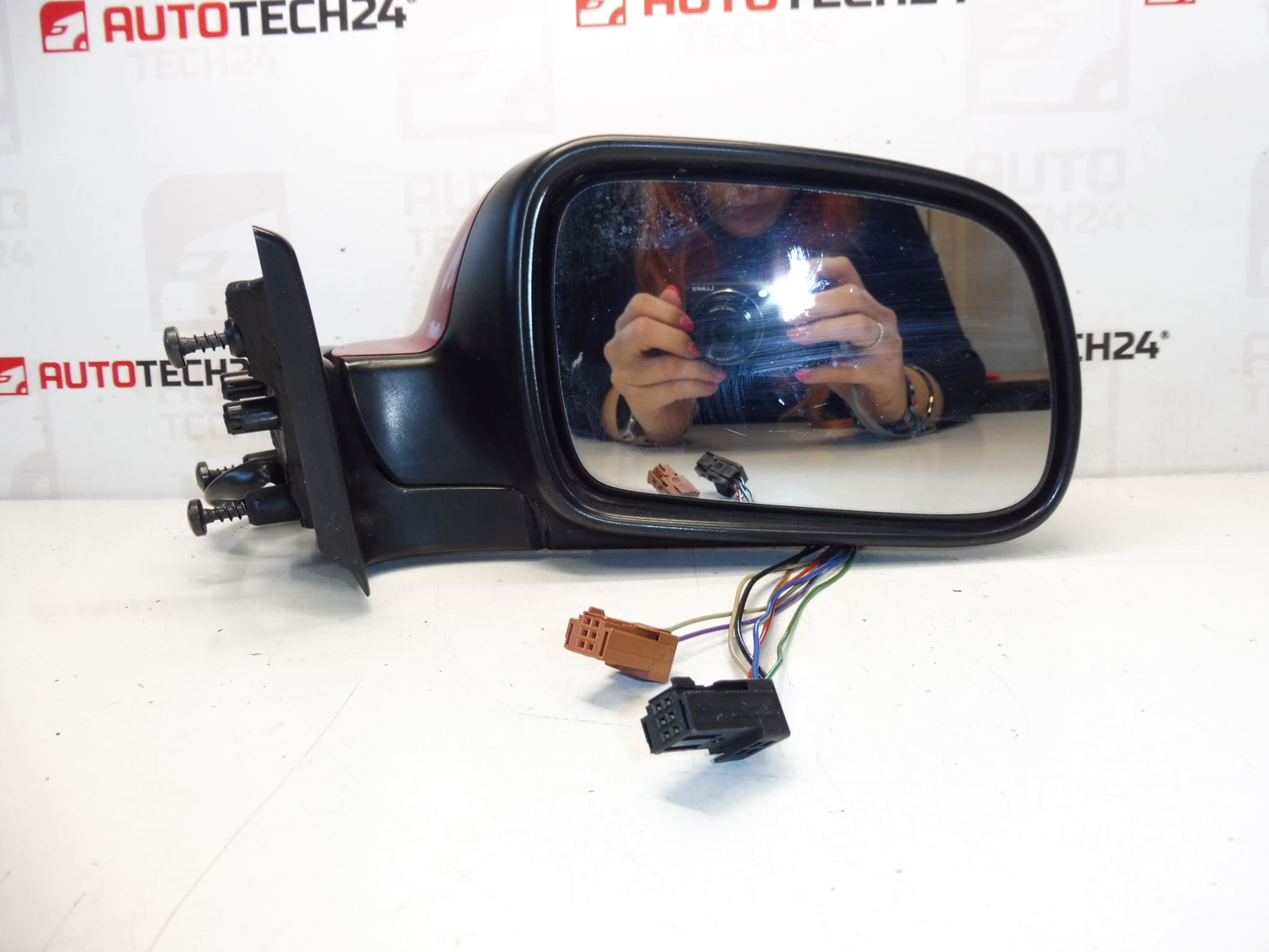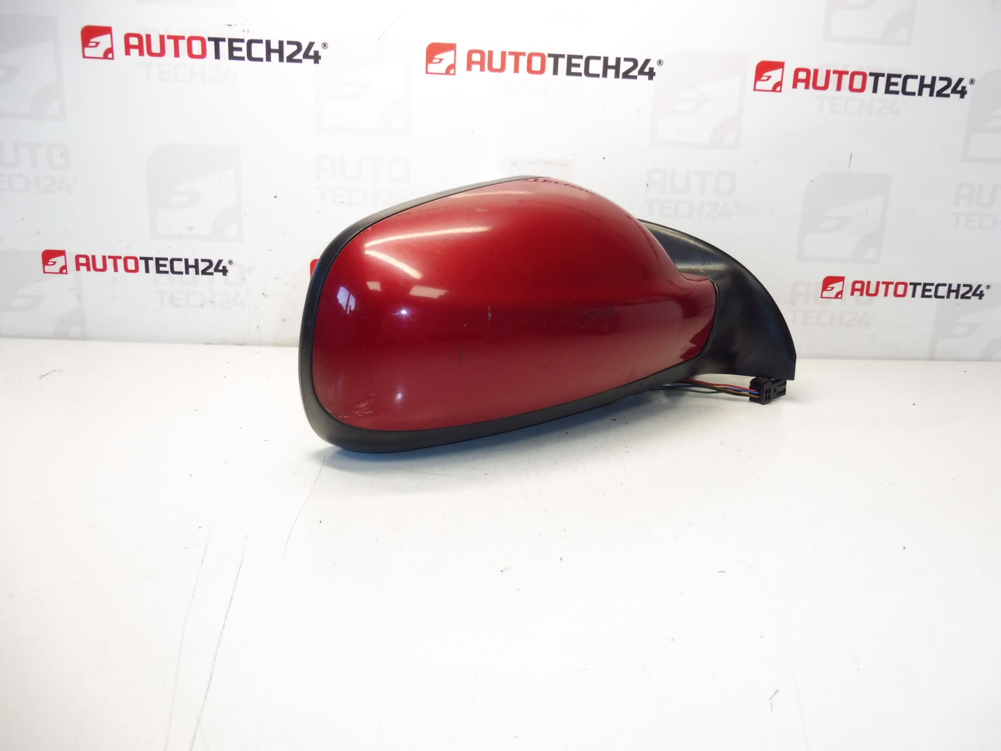 Linker Außenspiegel (Fahrerseite) für Peugeot 307. Elektrisch verstellbar und beheizt, elektrisch einklappbar. Farbe LKR – Lack Rot Babylone. 7‑polig (5+2).